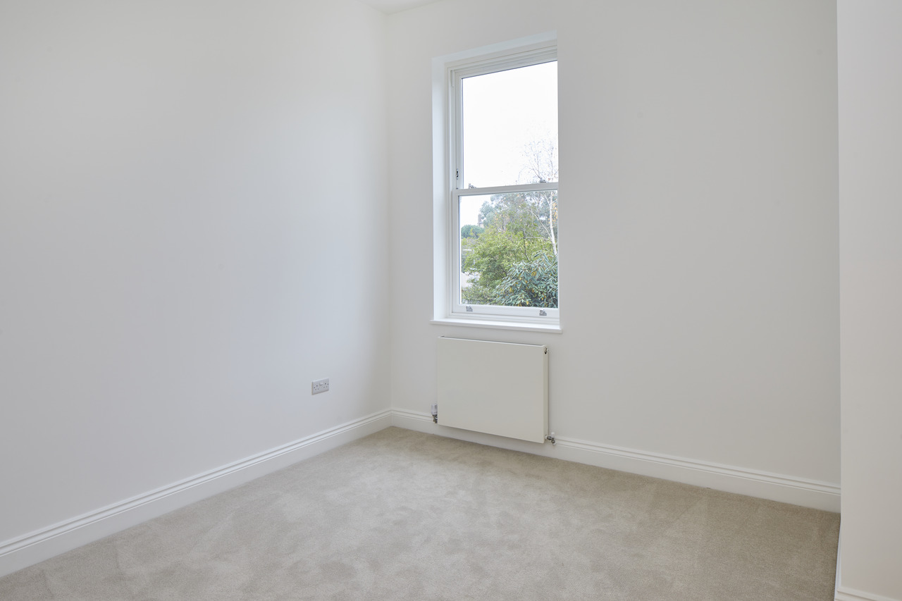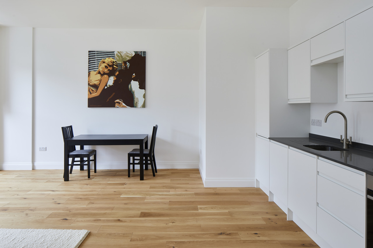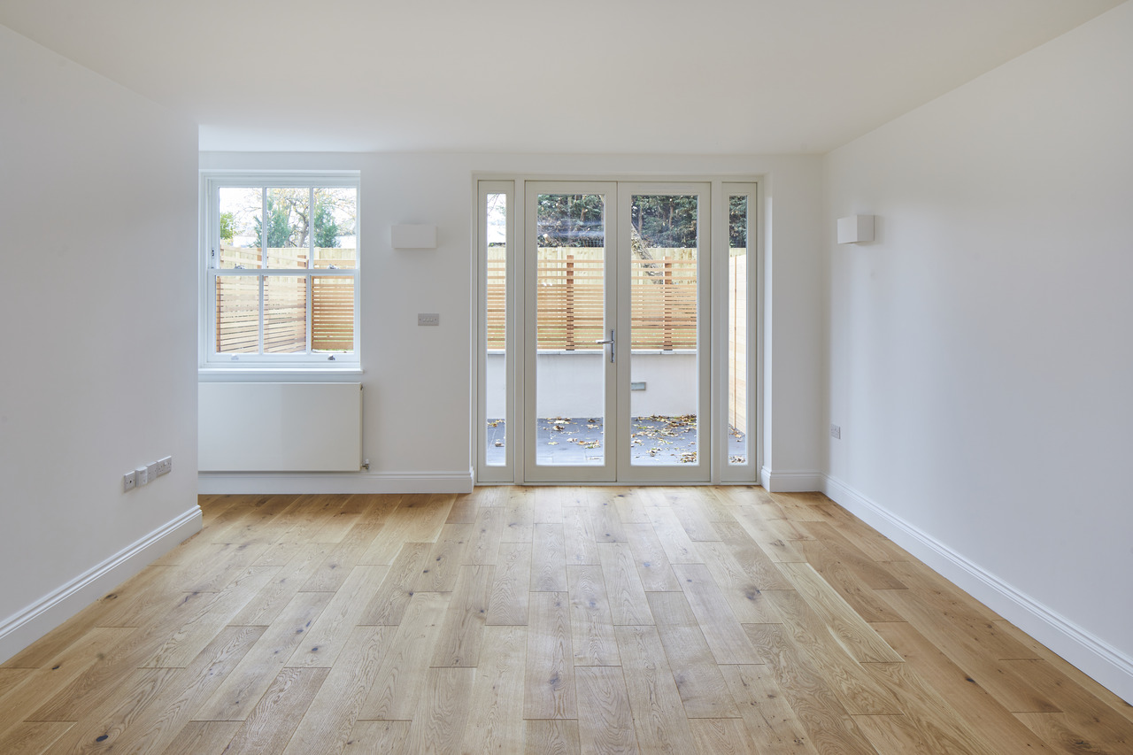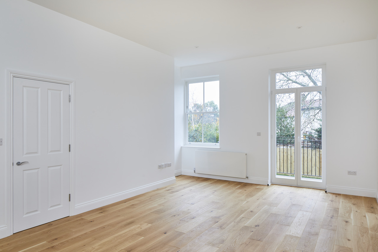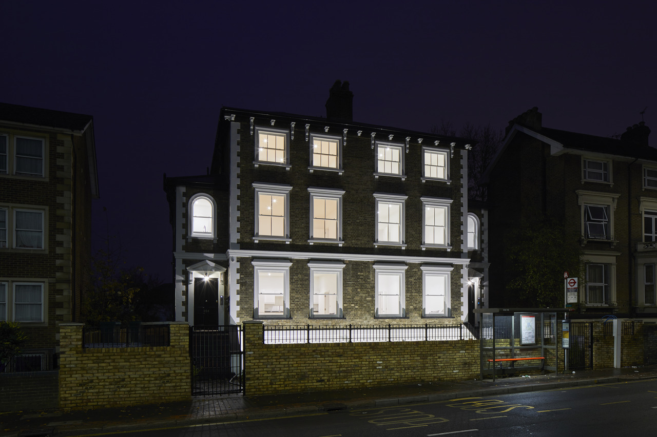 A full height full width rear extension was added, and the 2 houses re-configured into 12 flats, incorporating balconies to the rear elevation (image shown) and a shared communal garden.