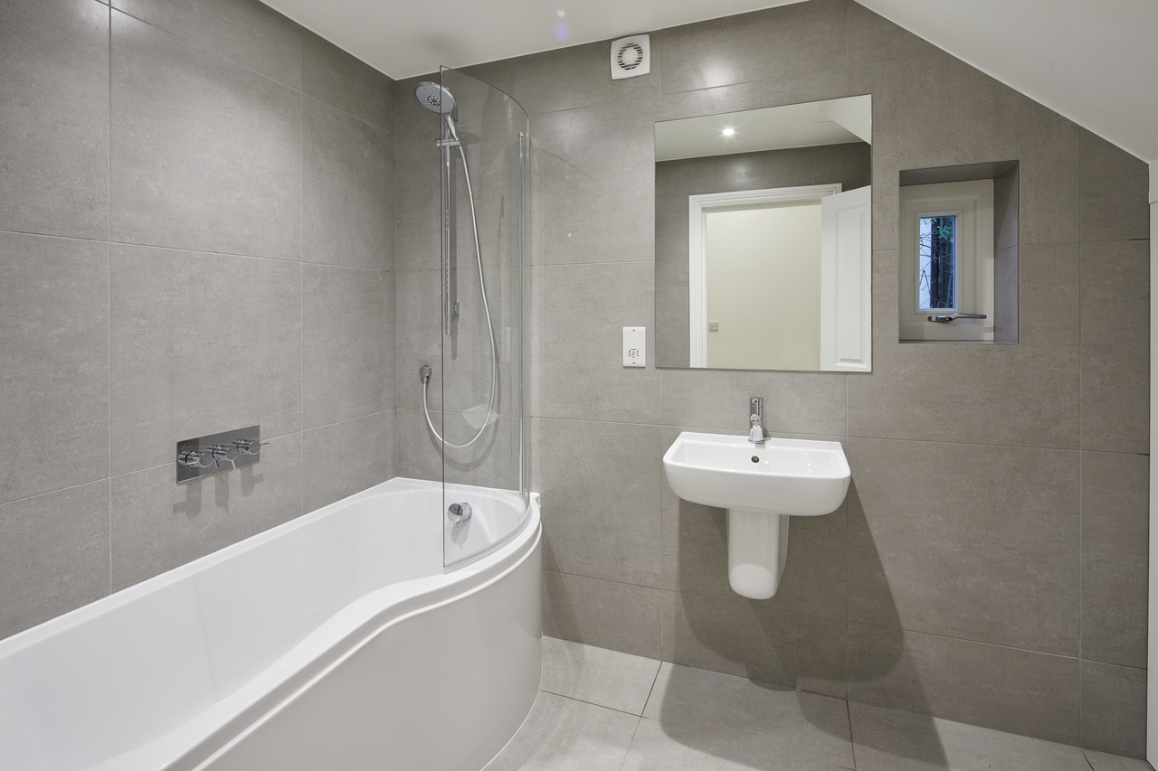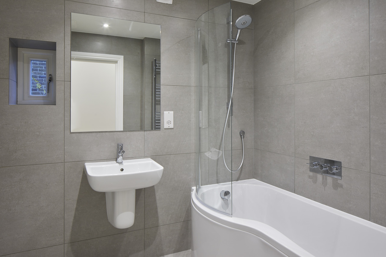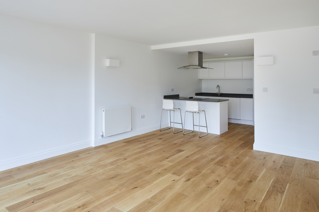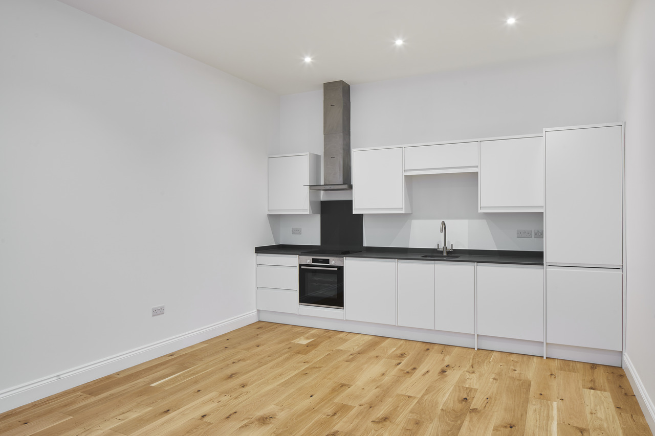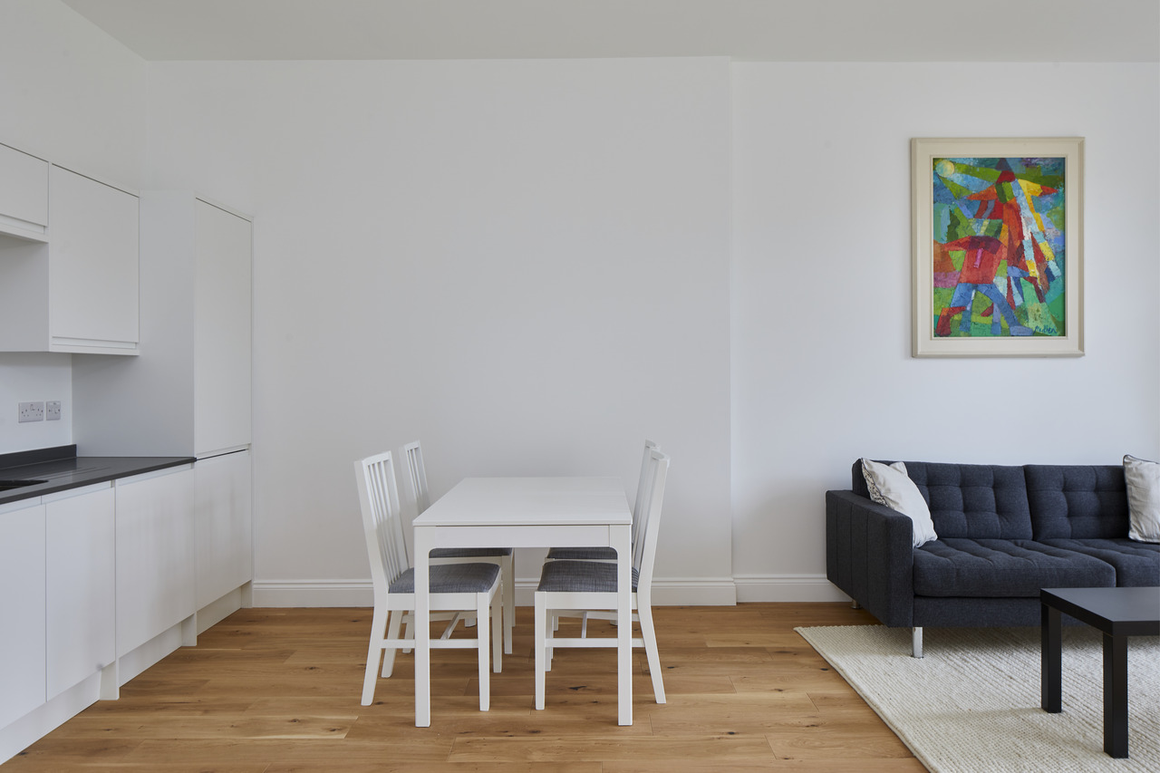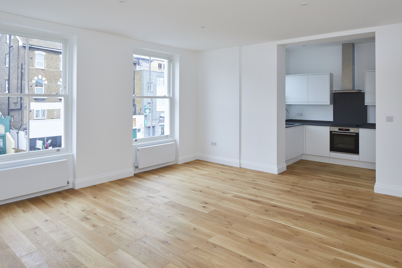A full height full width rear extension was added, and the 2 houses re-configured into 12 flats, incorporating balconies to the rear elevation (image shown) and a shared communal garden.