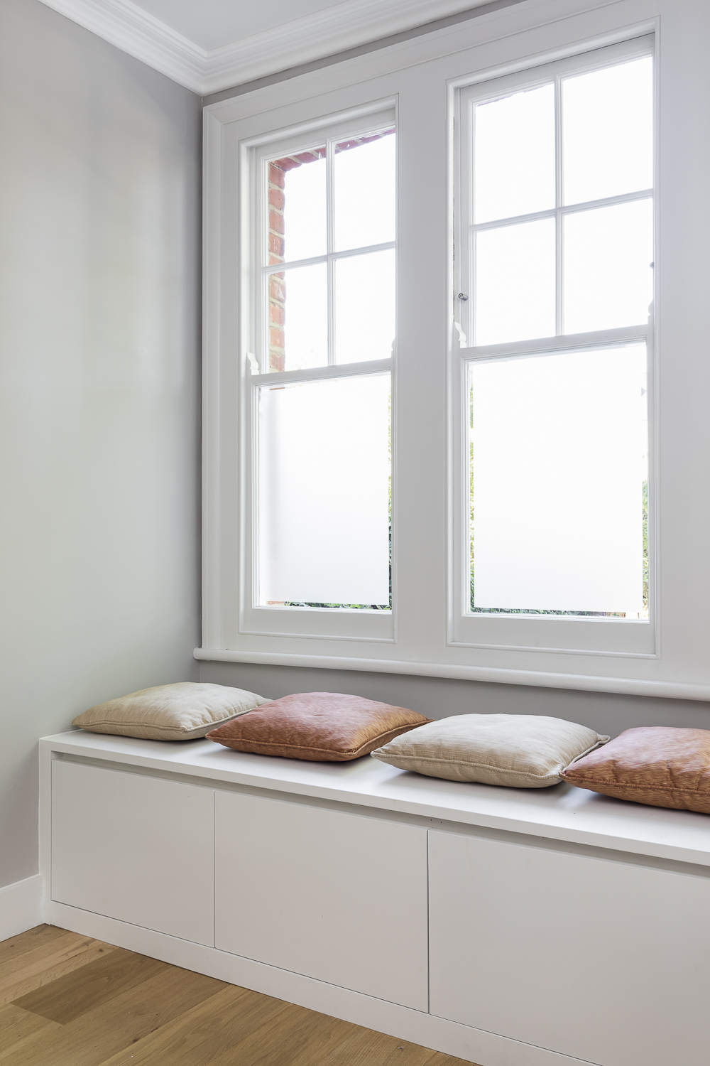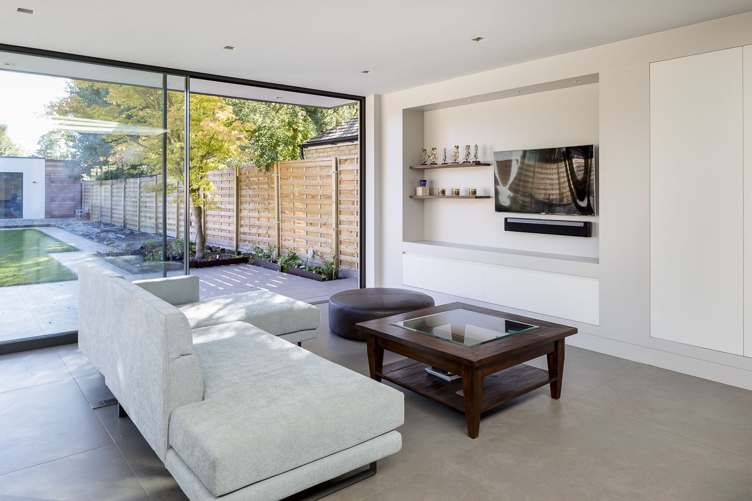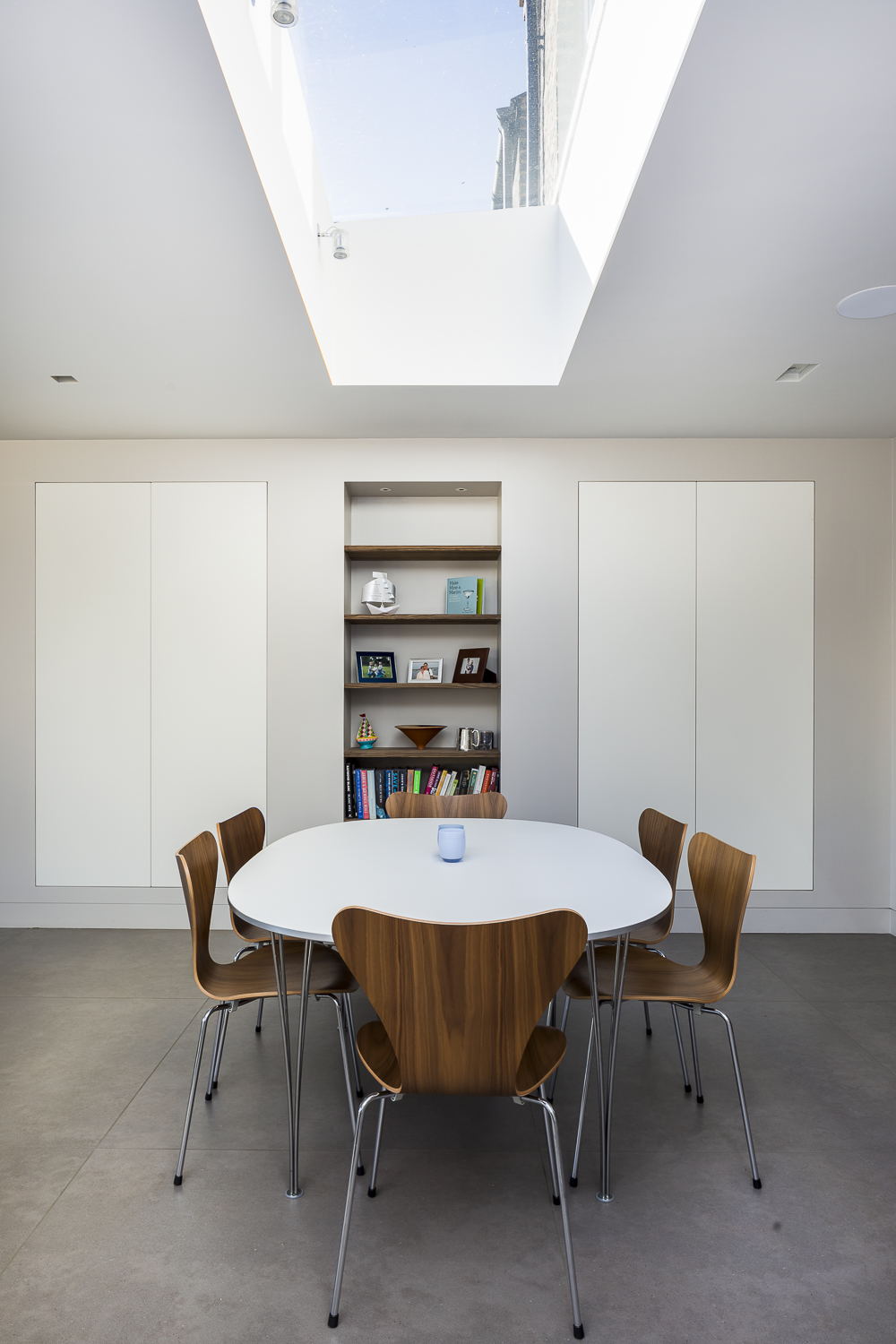 The brief required Modern living for the busy urban commuting family with teenagers, with uncluttered spaces, and careful integration of storage and technology.