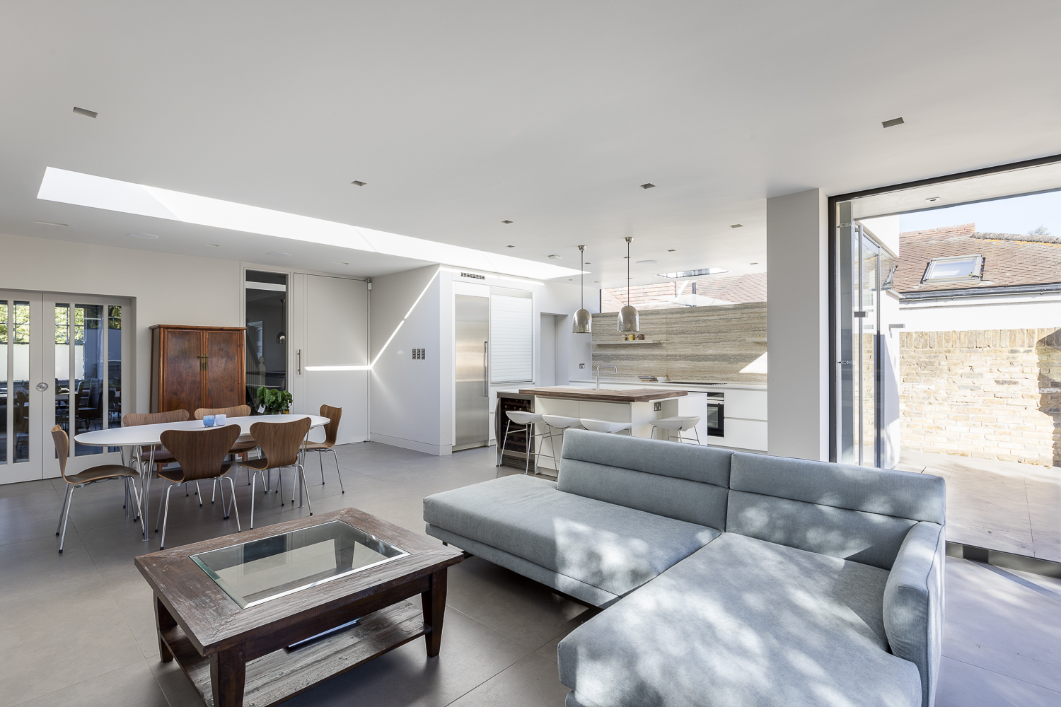 Located in a Kew, West London, this is a great example of one of our Urban house refurbishments incorporating a sizeable open plan extension.